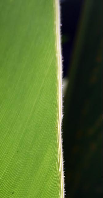 葉片披針形,長 30~60 公分,寬 5~10 公分,頂端漸尖而有一旋捲的小尖頭,基部漸狹,邊緣具短柔毛,兩面均無毛;葉柄長 1~1.5 公分;葉舌長 0.5~1.0 公分,外被毛。