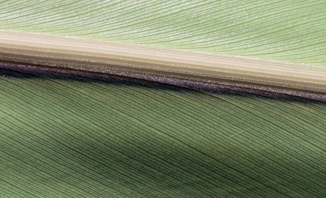 葉表具有與中肋約呈45度角斜生且微幅隆起之脈狀條紋。