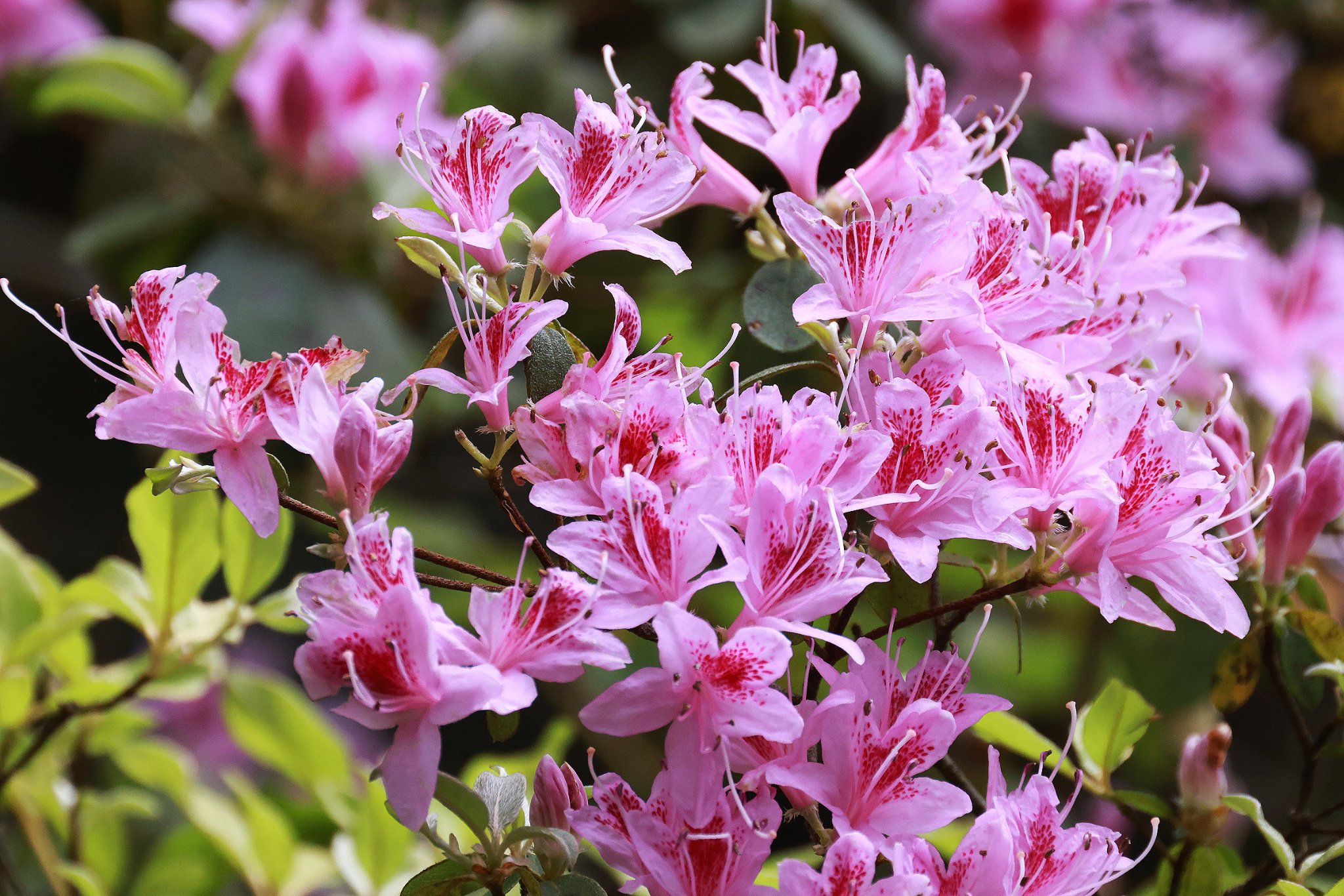 台灣特有種,分布最廣的杜鵑,比台灣杜鵑更強,但都是點狀分布,在低海拔至中高海拔的森林裡都可見,花色桃紅色,部分區域則會呈現粉紅色,嫩葉有直立腺毛,所以摸起來黏黏的,一開始是銀白色,但老熟後會轉為金黃色而有〝金毛〞之稱,幾乎一年四季都會開花,但主要還是集中在4-5月。雪霸園區武陵、觀霧、雪見都可以看的到。
