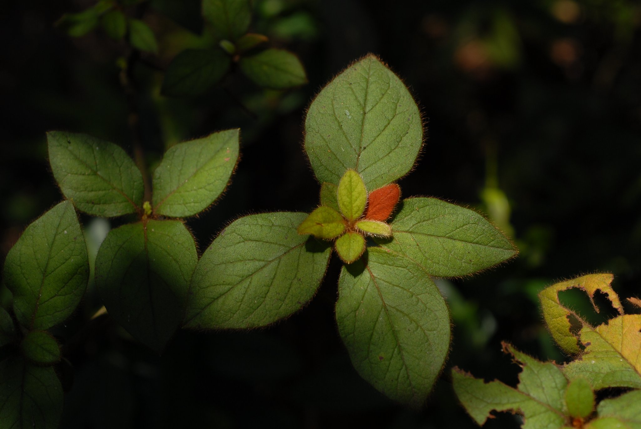 紅毛杜鵑,雄蕊約10枚,因枝葉有紅褐色貼伏毛而得名。在森林裡或中海拔分布者,葉子較大片且葉面平展,葉柄相對較長;而在3000公尺以上的草原地,它的變種即台灣高山杜鵑,其葉較小片而葉緣反捲,葉柄約2-3mm長而與前者有所區別。在雪霸園高山步道都有機會看到,像雪東線哭坡曾經有火燒過,它們就是現在最主要的植群代表。