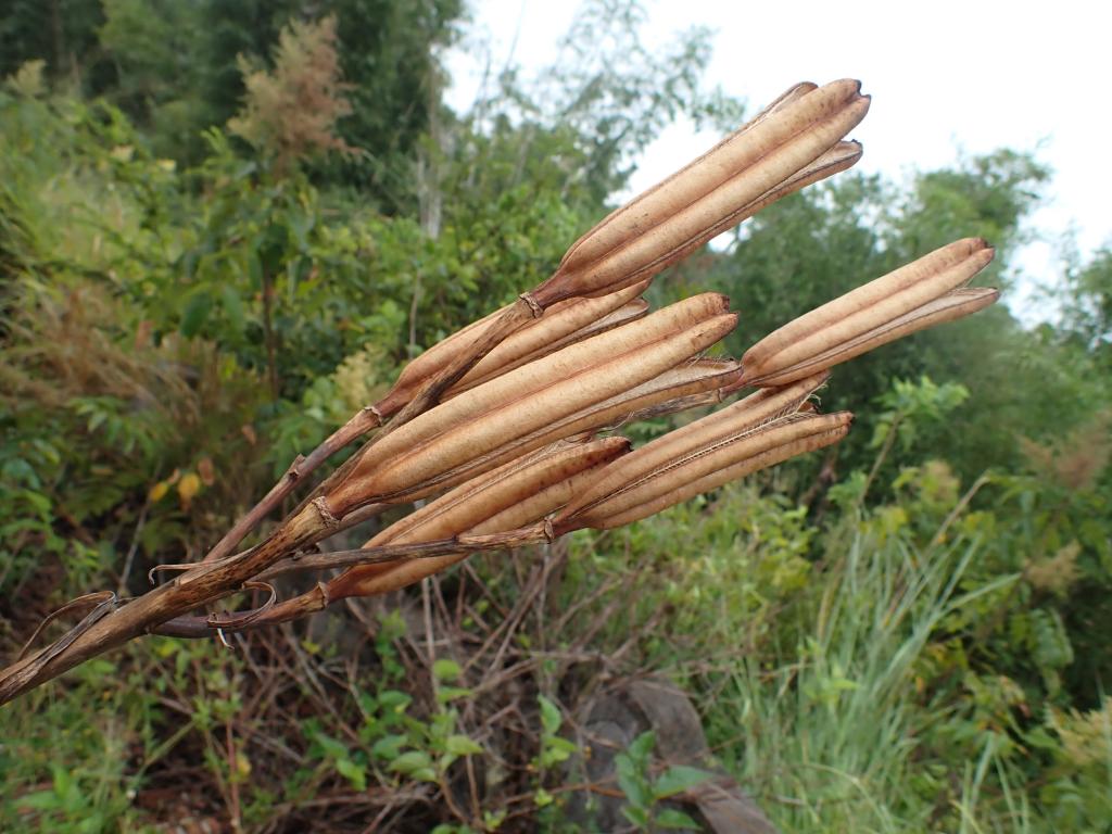葉無柄,基部抱莖,線形至披針線形,長 7 ~ 20 公分,寬 4 ~ 15 公釐,邊緣平展,先端反捲。蒴果長橢圓形,長 4 ~ 7 公分。