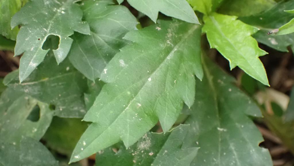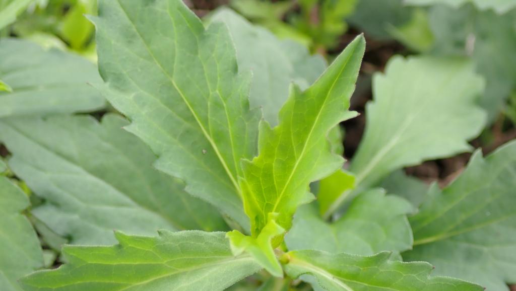 葉卵形或長橢圓形,先端銳尖,葉緣小或細鋸齒狀,莖中部之葉長 3 ~ 10 公分,寬 1 ~ 2.5 公分。