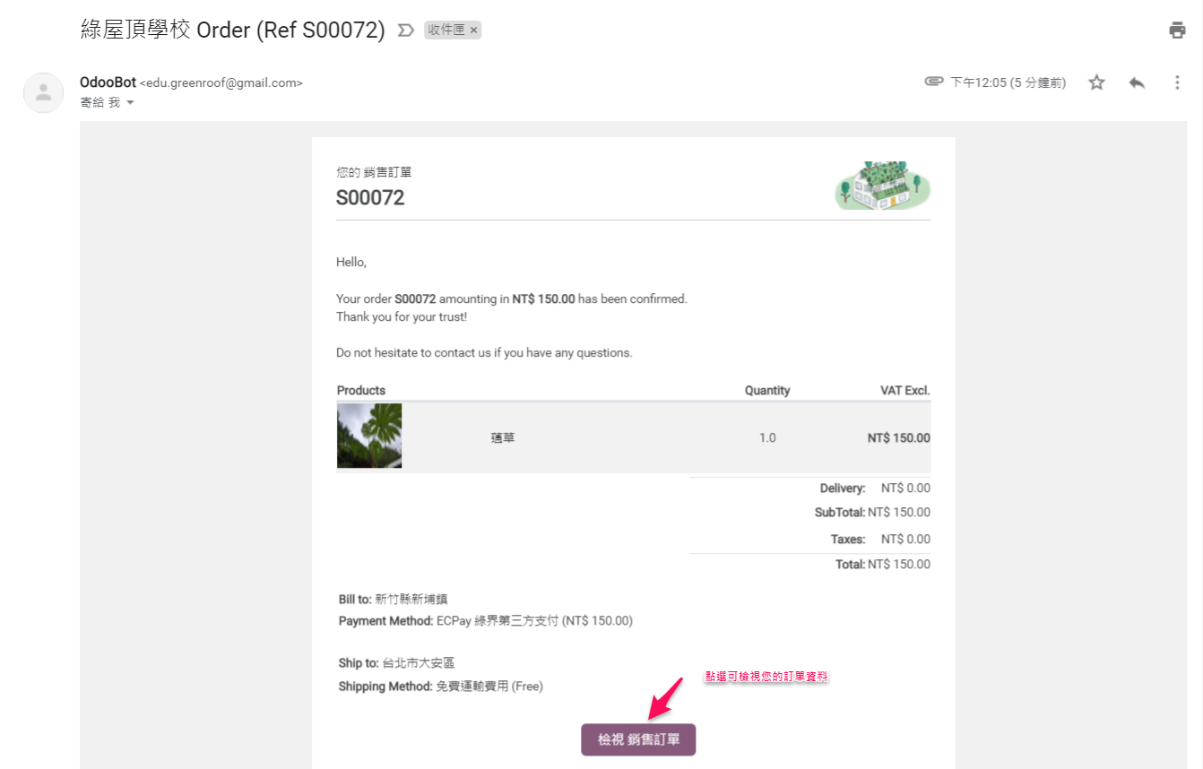 7. 確認付款和完成出貨準備後,您的 Email 會收到確認通知信。