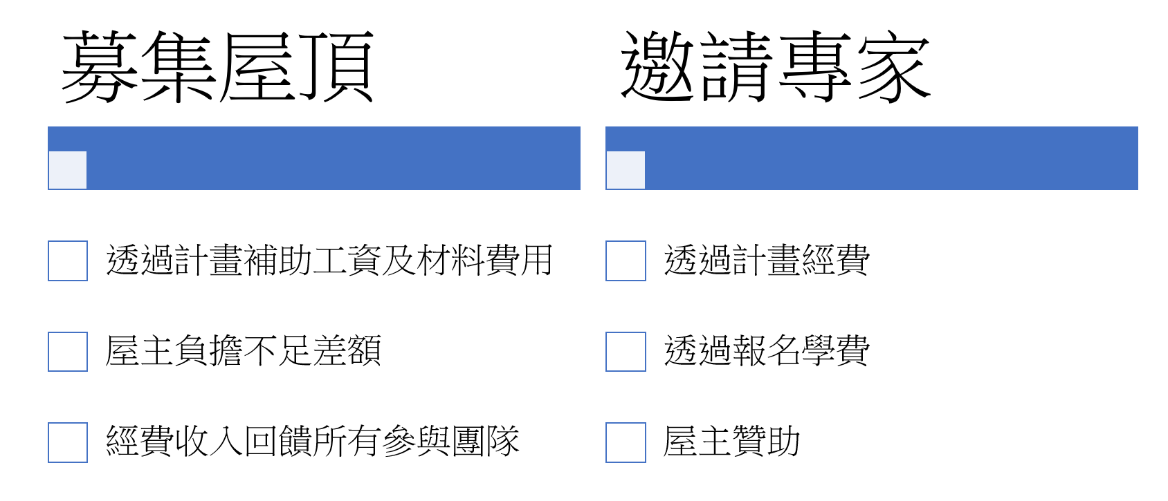 實際案例資料尚不足,需要持續發展課程,累積更多資料,提供民眾更完整的參考依據。同時也需要整合更多元的專業職人,能夠提供民眾更完整的技術指導。
